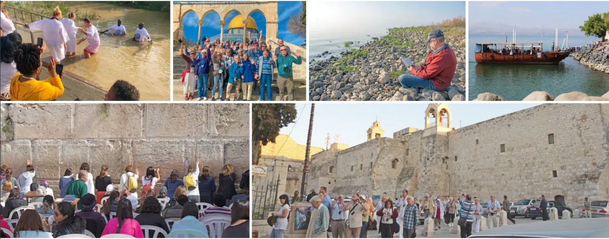 You will see Bethlehem, Mount of Beatitudes, Capernaum, Sea of Galilee, Mt. Zion, Temple Mount, Mount of Olives, Pool of Bethesda, Garden of Gethsemane, Garden Tomb, and more.